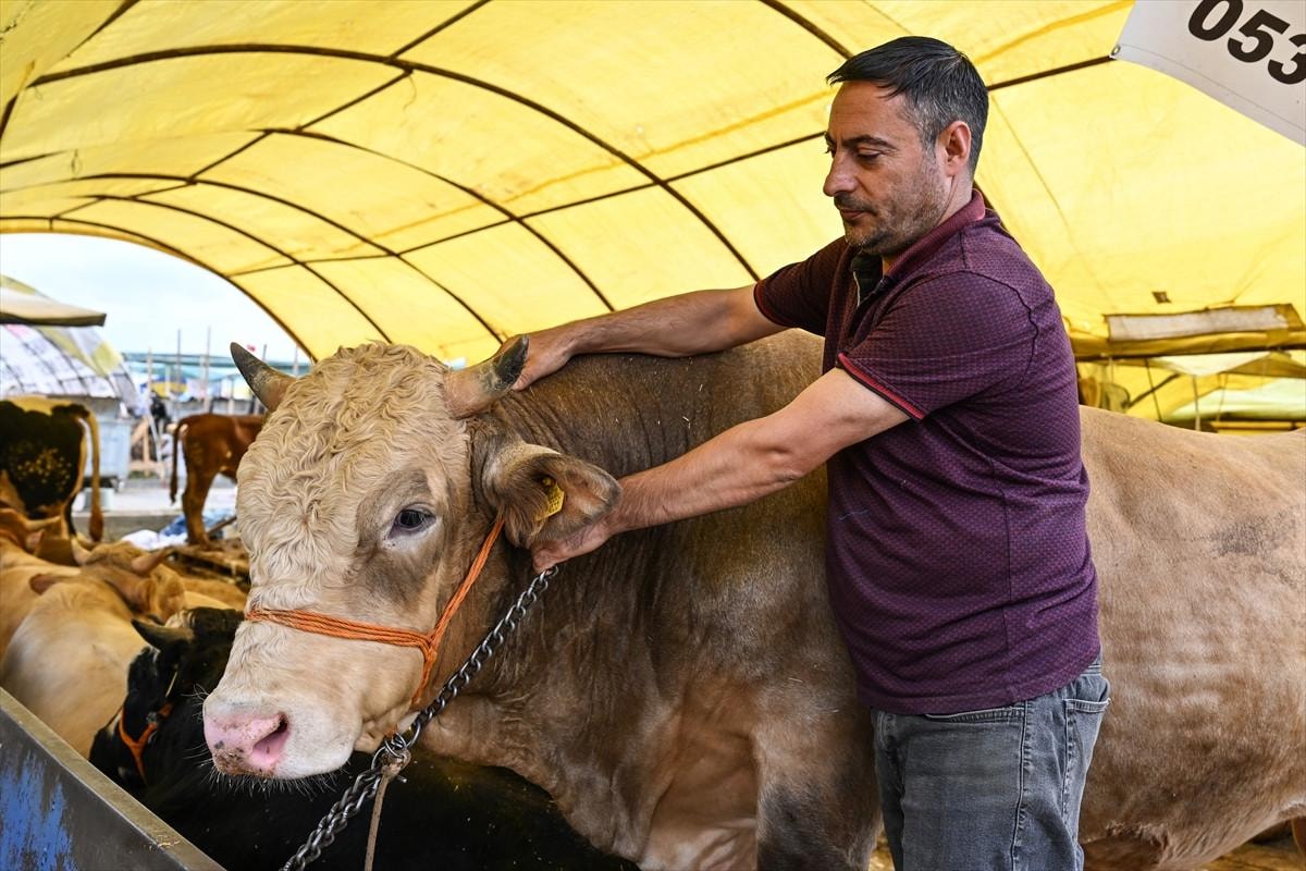 İstanbul'da kurulan kurban pazarlarında bok boy, kilo kilo kurbanlıklar alıcı bekliyor.