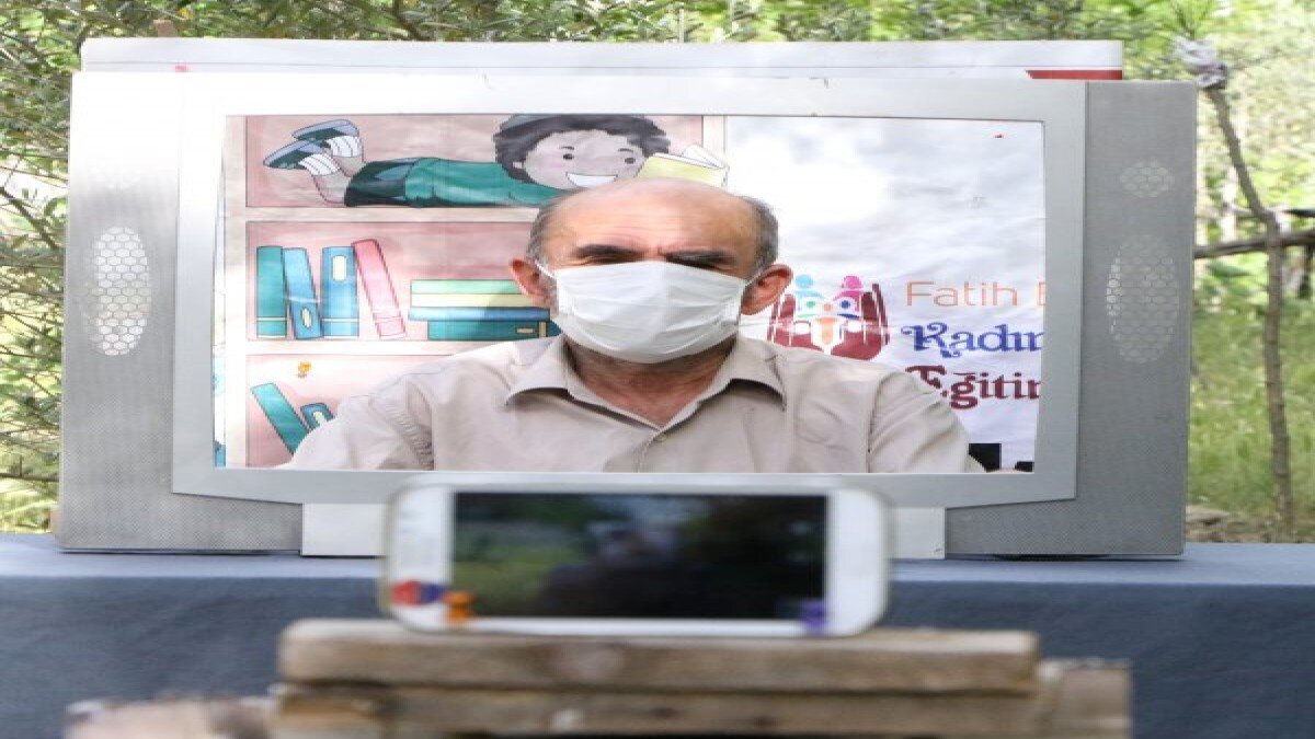 Karabük'ün Safranbolu ilçesine bağlı Sarıahmetli köyünde ikamet eden Recep Özen, koronavirüs salgını nedeniyle sokağa çıkma kısıtlaması nedeniyle vakit geçirmek amacıyla evinin bahçesine televizyon sistemi kurdu.