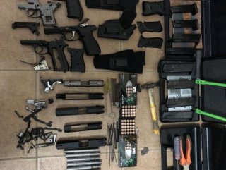 Yapılan aramalarda namlusu değiştirilmiş 5 tabanca, 8 şarjör ve bir de torna kılavuz makinesi ele geçirildi.