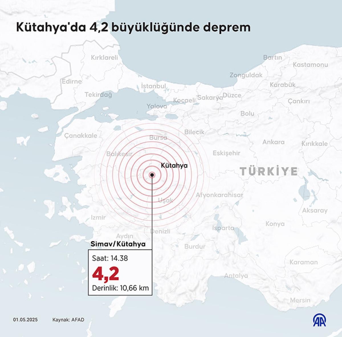 Afet ve Acil Durum Yönetimi Başkanlığı'ndan (AFAD), Kütahya'da merkez üssü Simav olan 4.2 büyüklüğünde bir deprem yaşandığı bildirildi.