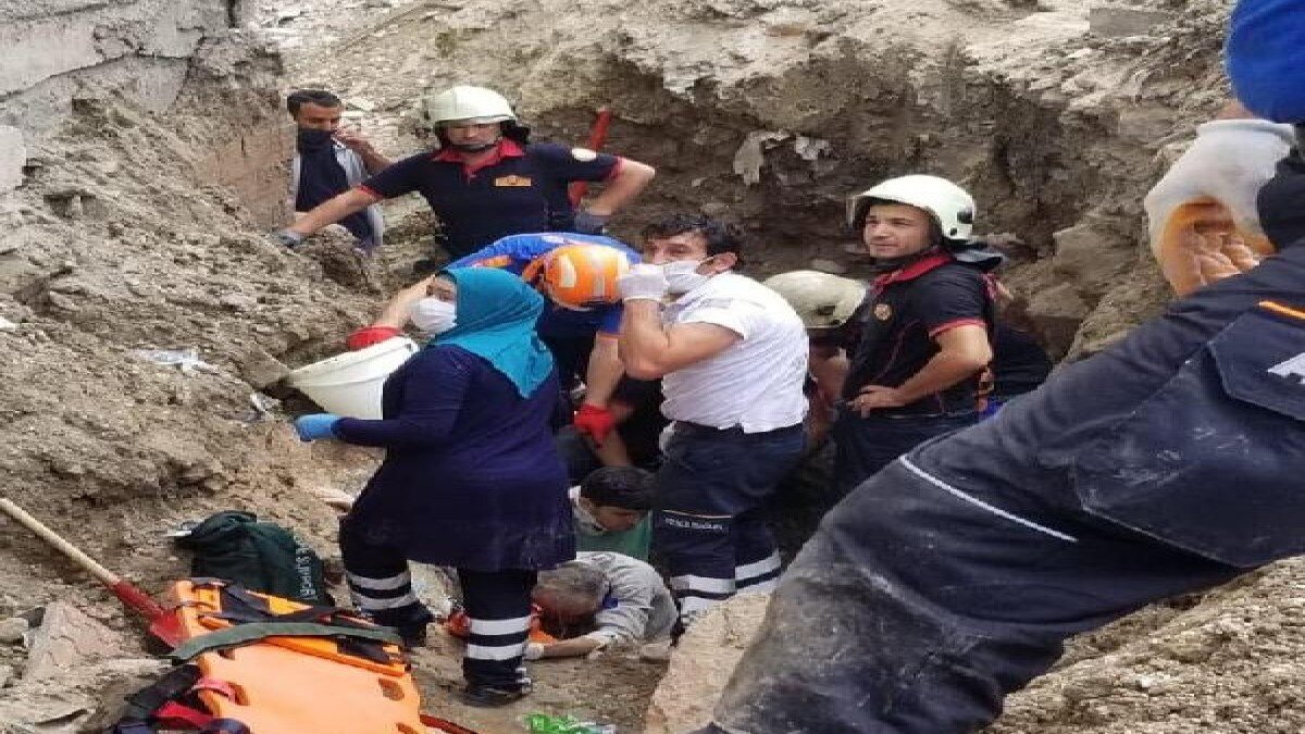 Okul duvarlarına yakın bir alanda yapılan kazı çalışmasında yaklaşık 2 metrelik derinliğe inen özel bir şirkete bağlı 2 işçi, kazı sırasında meydana gelen göçükte toprak altında kaldı.