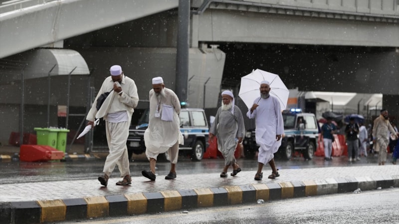 Suudi Arabistan'da hacılar, 40 derecenin üzerinde sıcaklığın etkili olduğu Mekke'de yağan sağanakla kısa süreli serinlik yaşadı.