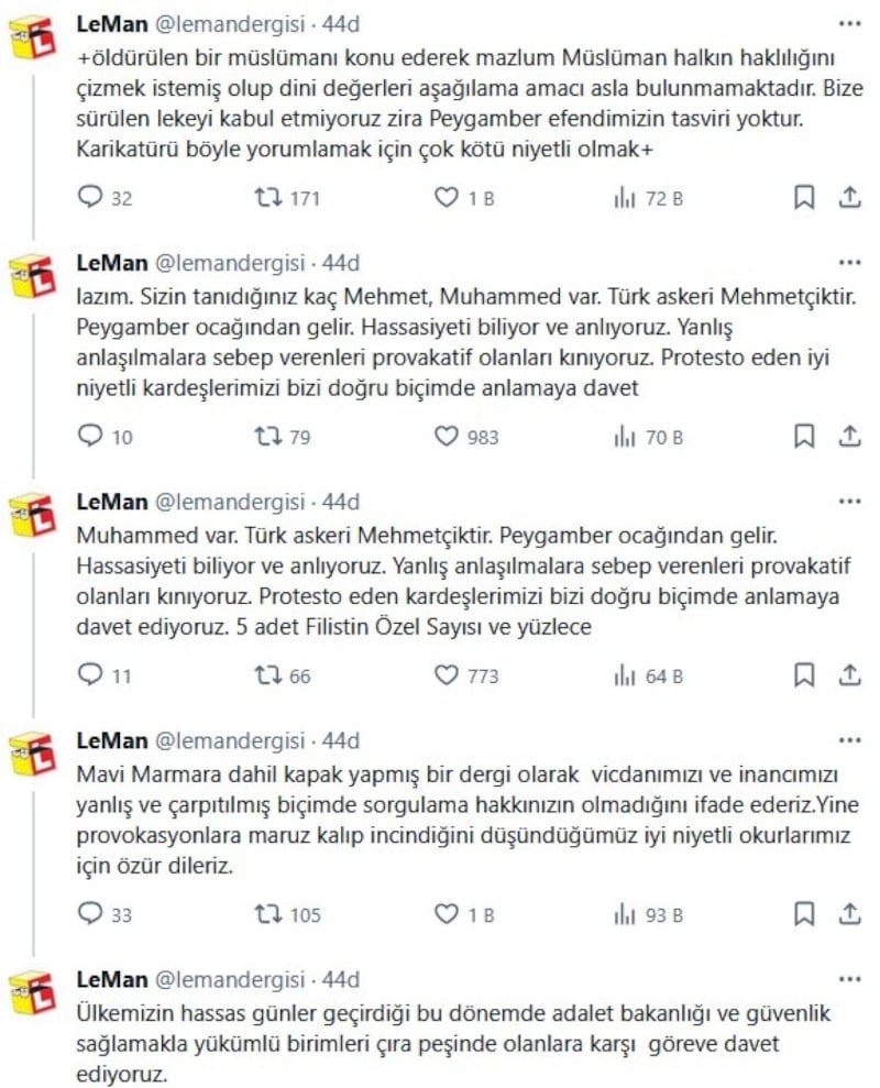 Leman dergisi, sosyal medya hesabı üzerinden kendisini savunurken, şu ifadelere yer verildi: