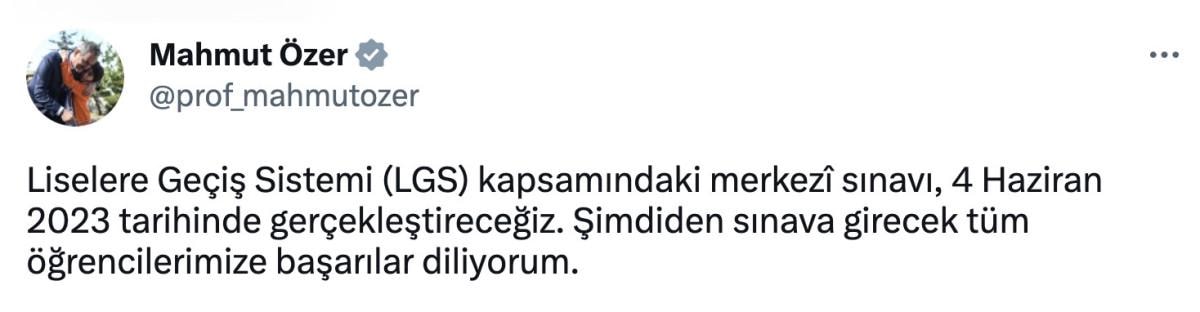 Milli Eğitim Bakanı Mahmut Özer'in Twitter hesabından yaptığı paylaşımla, sınav tarihi kesinleşti.