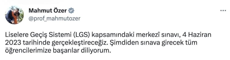 Liselere Geçiş Sistemi (LGS) kapsamındaki merkezi sınavı 4 Haziran'da gerçekleştireceğiz. Şimdiden sınava girecek tüm öğrencilerimize başarılar diliyorum.