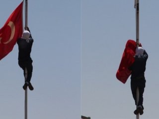 Göstericiler daha sonra 2. Hava Kuvveti Komutanlığı'nın arka kapısının olduğu bölgede duvardan atlayarak kışla içinde direkte asılı bulunan Türk Bayrağı'nı indirdi.