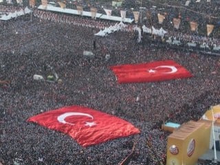 Miting alanı şimdiden dolmaya başladı. 3,5 milyon kişinin dev mitinge katılması bekleniyor..