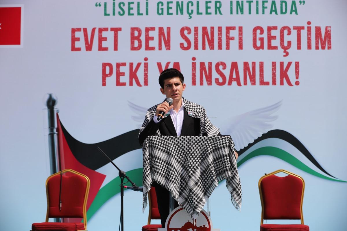 Refah Kampı’nın İsrail tarafından bombalanmasından sonra “Kudüs Bildirisi” yayınlayarak “Ey İsrail! Bugünün inanmış gençliği olarak Selahaddin Eyyubi’nin ruhu ile gelecek, işgal ettiğin o topraklardan seni tarihin çöplüğüne göndereceğiz.” diyen gençler, şimdi de “Liseli Gençler İntifadası” için bir araya geldi.