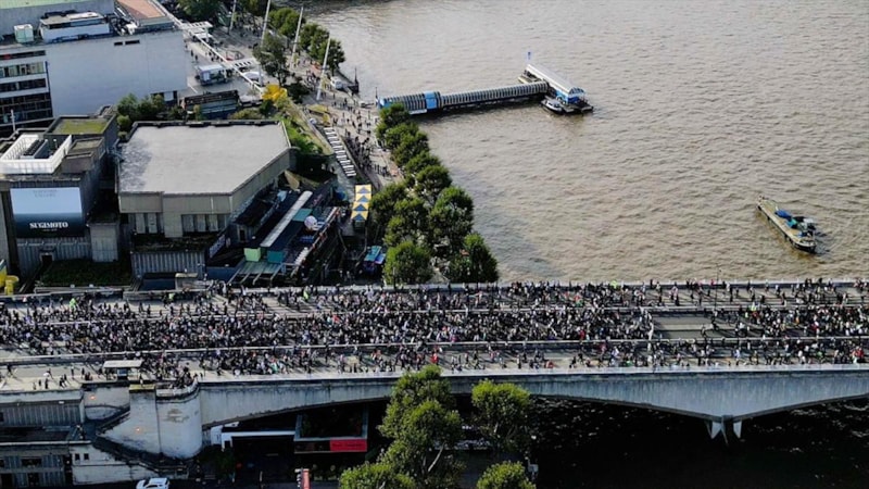 Polisin geniş güvenlik önlemleri altında gerçekleşen yürüyüş nedeniyle nehrin kuzey ve güney kıyısındaki yollar trafiğe kapatıldı.