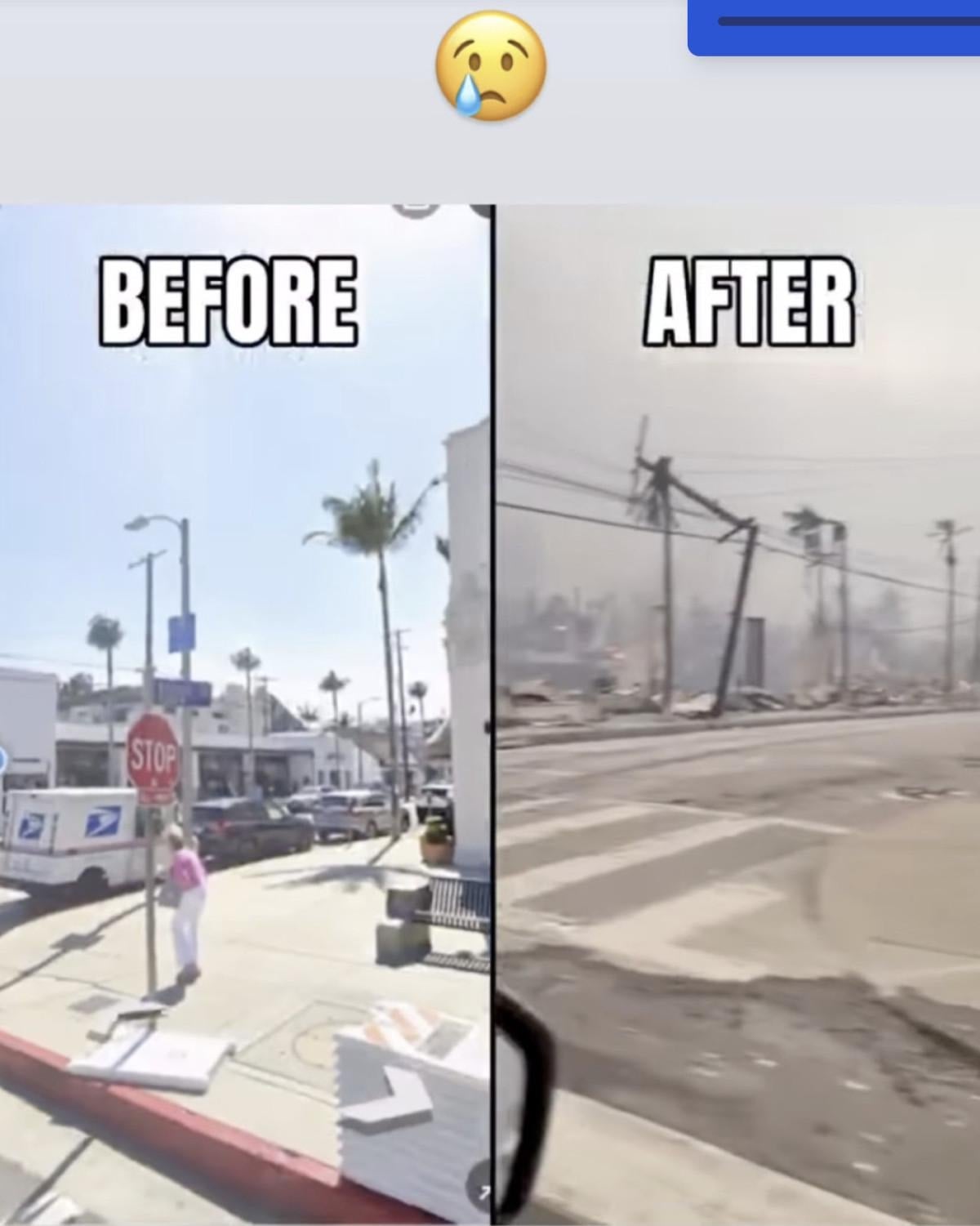 Çamkıran, ayrıca Los Angeles'ın yangından önceki ve sonraki haline ilişkin de bir paylaşımda bulundu.