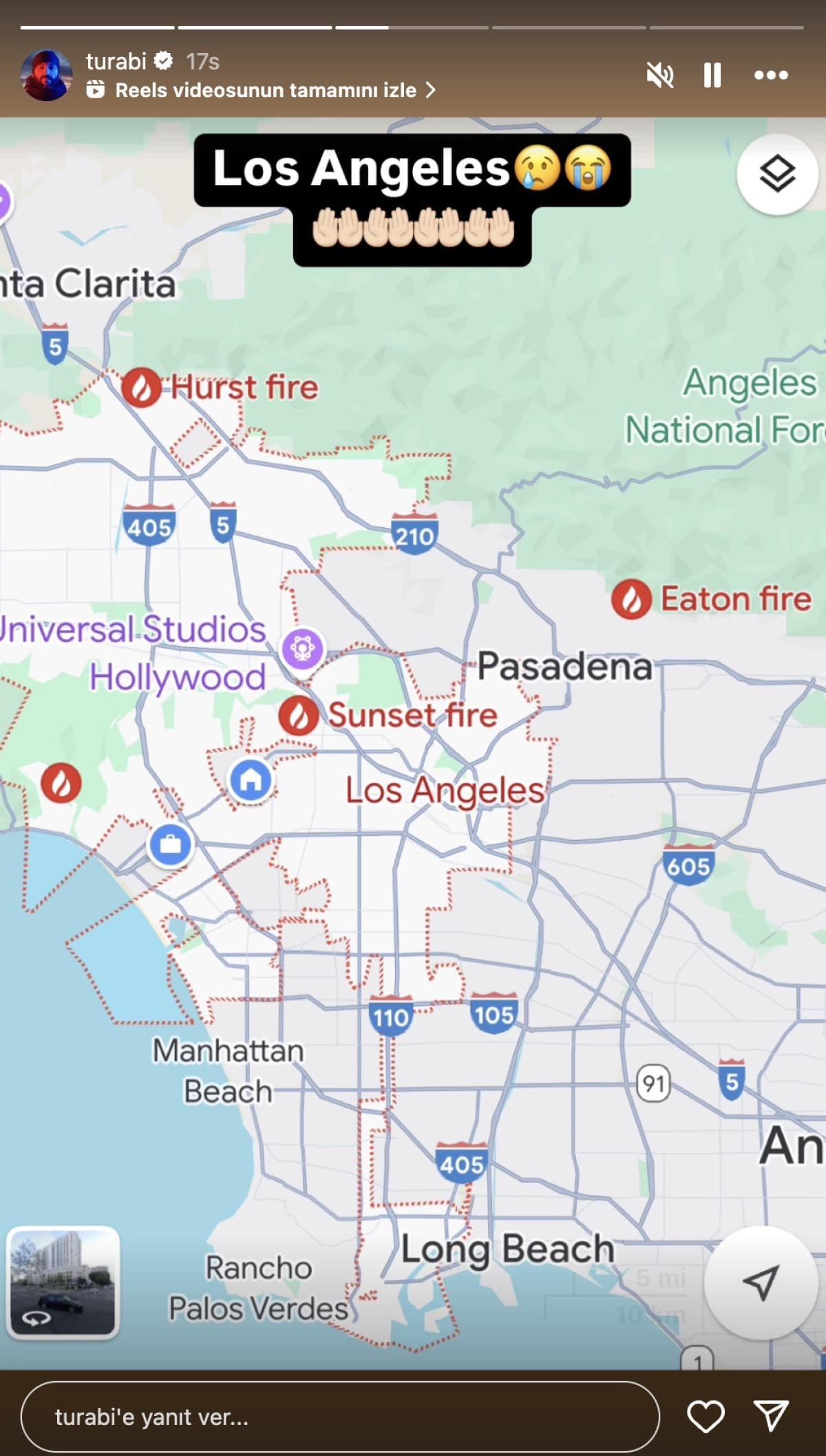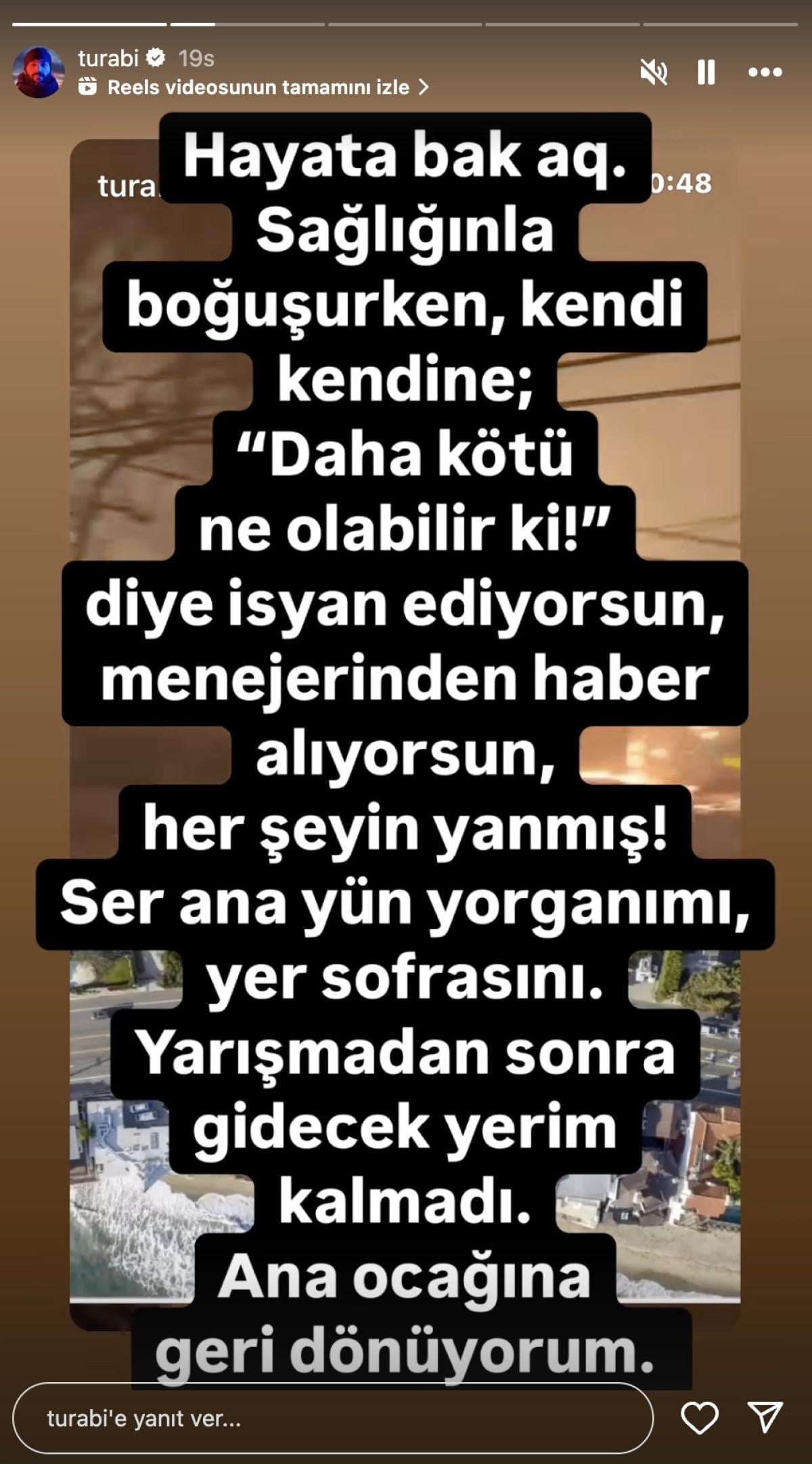 Sosyal medya hesabından yaptığı paylaşımda Los Angeles'ta meydana gelen yangın felaketinde evini ve arabasını kaybettiğini duyuran Turabi, duruma isyan etti.
