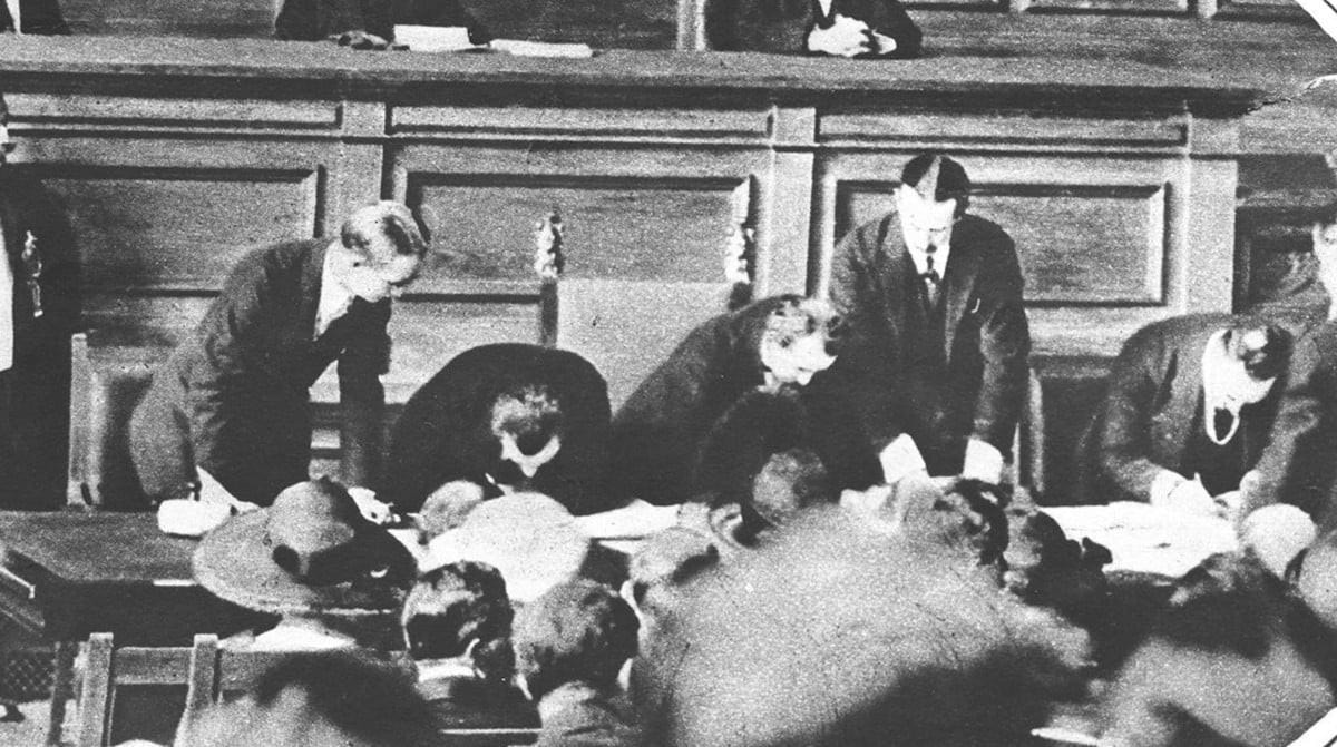 1. Dünya Savaşı sonucunda 24 Temmuz 1923'te İsviçre'nin Lozan şehrinde imzalanan antlaşmaya; Türkiye Büyük Millet Meclisi (TBMM) temsilcileriyle Birleşik Krallık, Fransa, İtalya, Japonya, Yunanistan, Romanya, Bulgaristan, Portekiz, Belçika ve Yugoslavya temsilcileri katıldı.