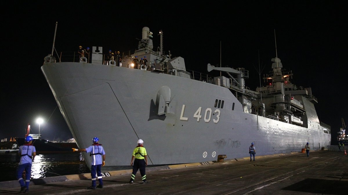 Yüklerin boşaltılmasının ardından sivillerin tahliyesini gerçekleştiren amfibi gemileri, 2 firkateyn ve 2 karakol gemisi eşliğinde Türkiye'ye dönüşe geçmişti.