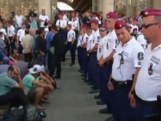 Olay yerine gelen yüzlerce polisten oluşan Macar çevik kuvvet ekipleri gösteriye izin vermezken, 1,5 saatlik süren mücadeleden sonra mültecileri garın dışına çıkarmayı başardı.