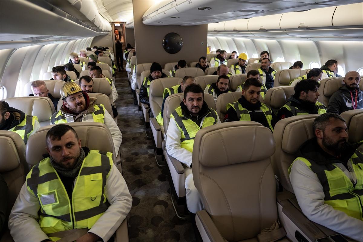 "TUR" ile Adana Havalimanına gelen madenciler, malzemelerini aldıktan sonra deprem bölgelerine gitmek ve arama kurtarma çalışmalarına katılmak üzere yola çıktı.