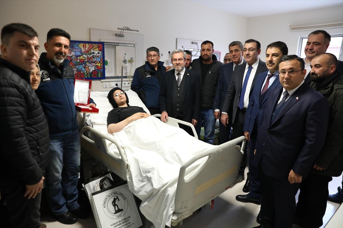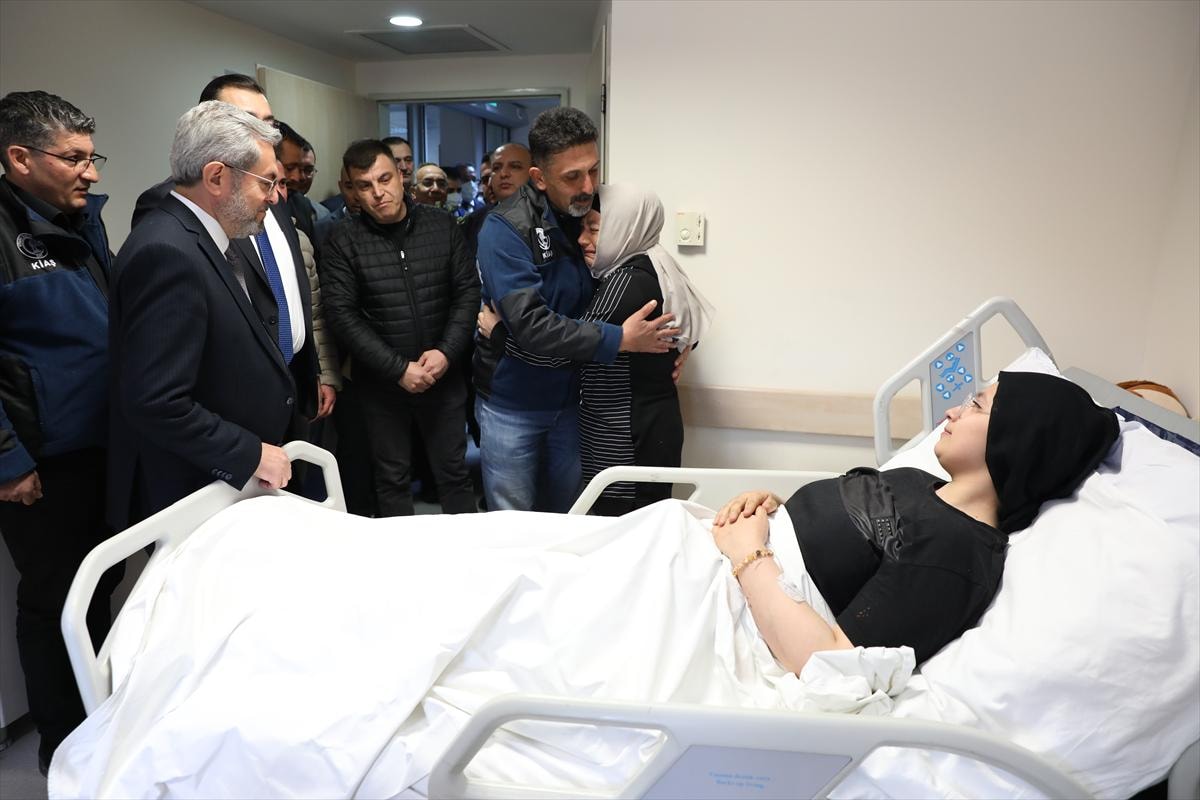 6 Şubat günü Kahramanmaraş merkezli depremin ardından enkaz altından 248’nci saatte kurtarılan 17 yaşındaki Aleyna Ölmez’i enkazdan kurtaran madenciler tedavi gördüğü Ankara Üniversitesi Cebeci Hastanesinde ziyaret etti.