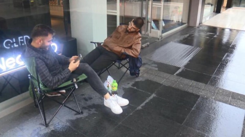 Yeni çıkıyor. Biz de bir heves ettik. Alacağız buradan ve gideceğiz, sabah 08.00'e kadar mecbur buradayız. Erkenden gelip alalım dedik. İlk bize gelsin telefon. Bekleniyordu da telefon dedik ilk biz alalım. Dedik ki sabaha kadar oturacağız orada perişan oluruz orada bir de sandalye atalım bekleyelim. Sıkıntı olmasın uyursak da üstünde uyuyalım diye. İçecek kahve, çekirdek, cips her şeyimizle buradayız.