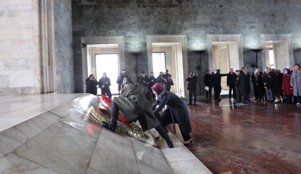 "5 Aralık 1934 tarihinde Türk kadınının seçme ve seçilme hakkını elde edişinin bugün 89'uncu, Cumhuriyetimizin ise 100'üncü yıl dönümünü büyük bir gururla idrak ediyoruz. Bu müstesna günde siyasette, ekonomide, karar alma mekanizmalarında, hayatın her alanında bilgi ve tecrübesiyle eşsiz başarılara imza atan, açtığınız demokrasi yolunda gururla yürüyen kadınlar olarak manevi huzurunuzdayız. Zatıalilerinizin yüksek vizyonu, ileri görüşlülüğü sayesinde dünyadaki birçok devletten önce seçme ve seçilme hakkını elde eden Türk kadını, bugün gelişmiş, modern Türkiye'nin temellerini atarak, yaşayan güçlü demokrasimizin ruhu olmuştur. Bu sayede kadınlar, toplumun tüm kesimleriyle dayanışma içerisinde, Cumhuriyetimizin gelecek nesillere taşınmasında, kadın erkek eşitliğinin tesis edilmesinde, demokratik yaşamın ve toplumsal adaletin güçlenmesinde öncü rol oynamıştır. Kadın görünürlüğü sanattan spora, siyasetten karar alma mekanizmalarına kadar her alanda artarak devam etmektedir. Cumhuriyetimizin ikinci asrında aile ve toplumun temeli kadınlar olarak ülkemizi çağdaş medeniyetler seviyesinin üstüne çıkarmaya devam edeceğiz."