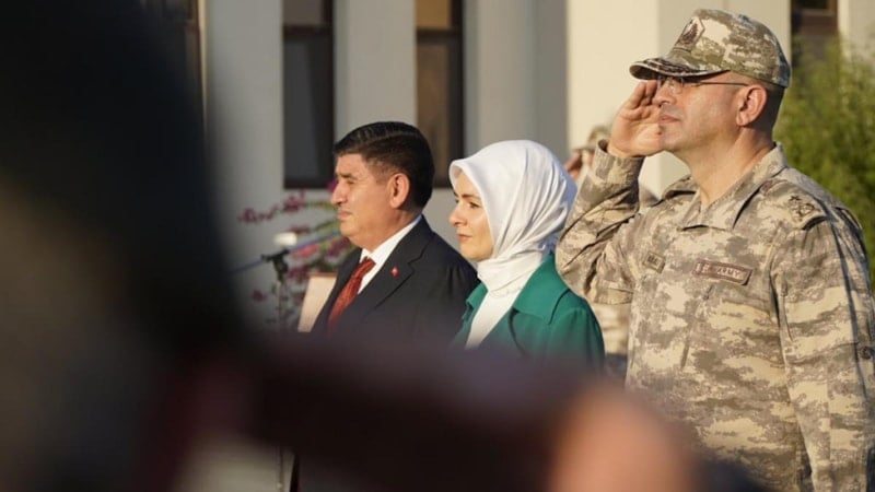 Sınır ötesinde hizmet veren askerlerle bir araya gelen Göktaş, resmi törenle karşılandı.