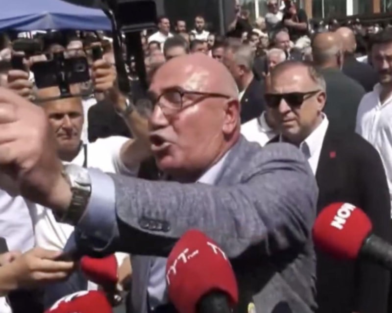 CHP'nin Şanlıurfa Milletvekili Mahmut Tanal, CHP İstanbul İl Başkanlığı önünde bulunan polis ekiplerin tehdit etti ve parmak salladı.