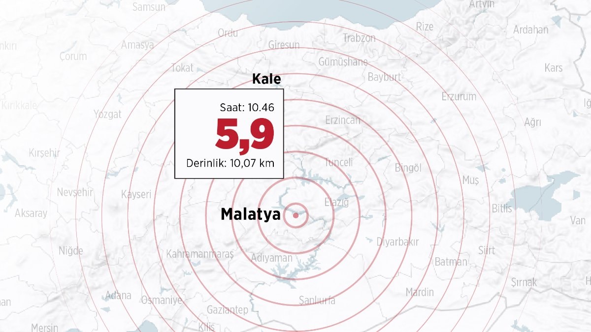 Malatya'nın Kale ilçesinde saat 10.46'daki 5,9 büyüklüğünde depremin ardından 30 artçı sarsıntı meydana geldi.