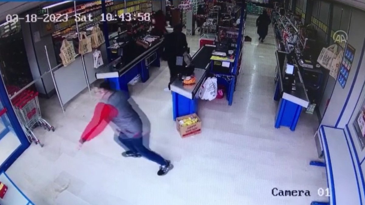 Bir markette deprem nedeniyle yaşanan panik anları da güvenlik kameralarına yansıdı.