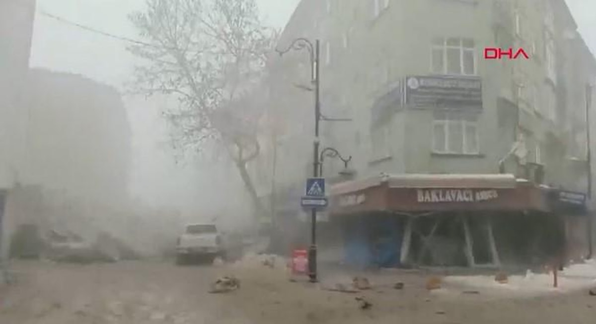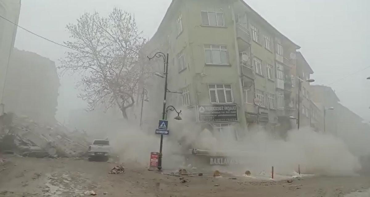 Depremin ardından Battalgazi ilçesi Akpınar Meydanı’ndaki bir binanın çökme anının görüntüleri yayınlandı.