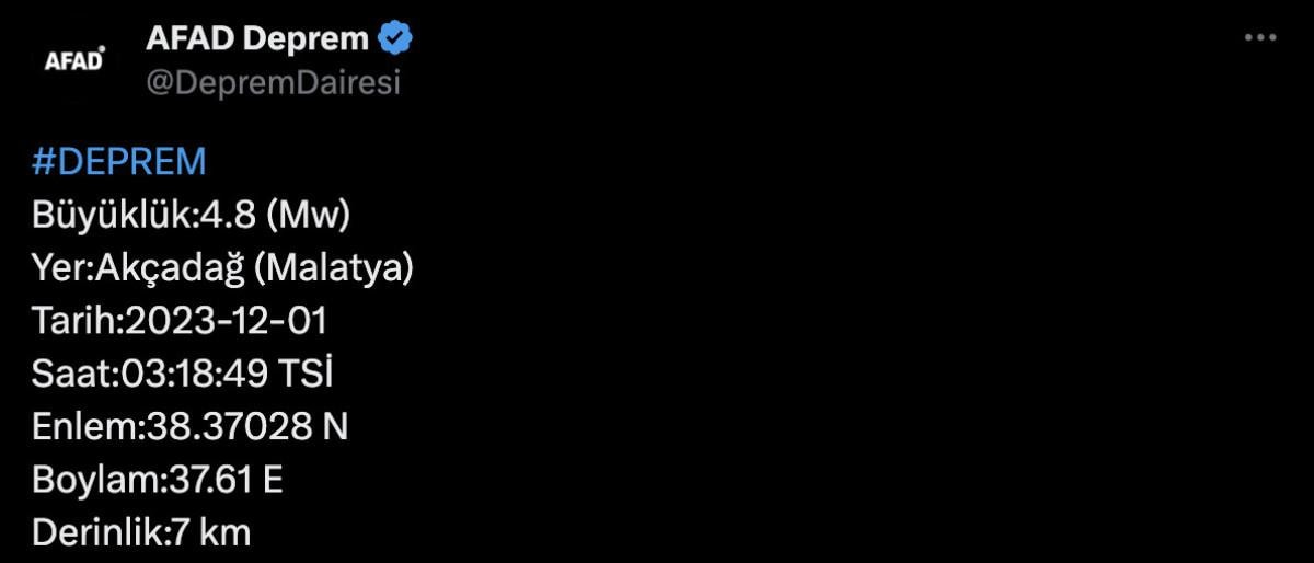 6 Şubat'tan bu yana artçıların sürdüğü kentin Akçadağ ilçesinde saat 03.18'de 4.8 büyüklüğünde sarsıntı yaşandı.