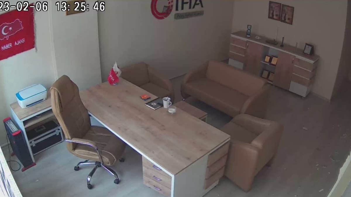 Deprem anı ise güvenlik kamerasına yansıdı.