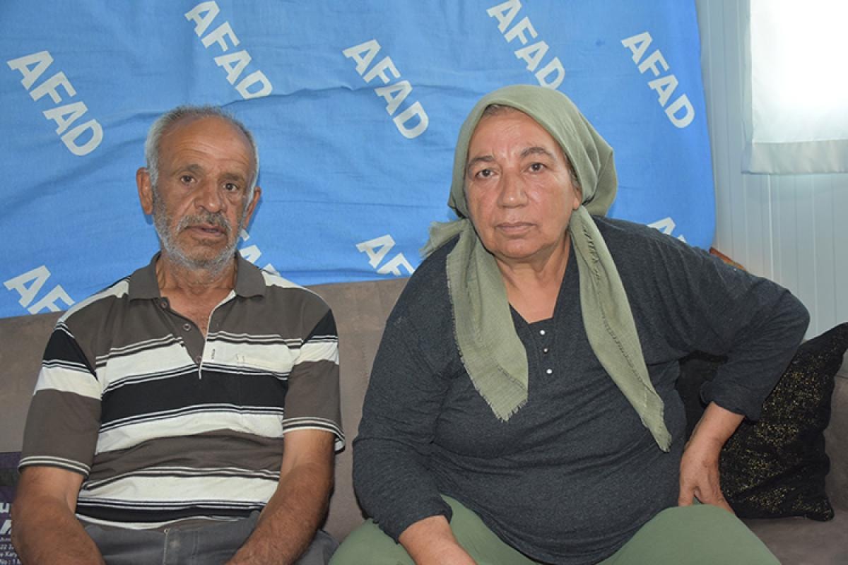 Kendimizi dışarı attık. Evden hiçbir şey alamadık, çocuklarımın canı sağ. Ev ağır hasarlı olduğu için giremedik, dağılmıştı. Çadır kurdular, 14 gün çadırda kaldık, sonra bir okula yerleştirdiler, bir hafta kaldım, akabinde Sütlüce Mahallesi'nde ablamın bir göz evi vardı, 13 kişi kaldık. Sonra konteyner çıktı, yerleştik. Ben de burada kızımın yanında misafir görünüyorum. Eşim de ben de yüzde 50 engelliyiz, yürümekte zorluk çekiyoruz.