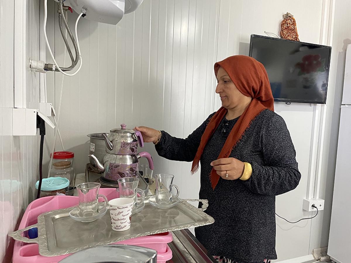 Buraya geldik, konteynerde rahat oturuyoruz. Mart ayından bu yana konteynerde yaşıyoruz. Konteynerde şu anda bir ihtiyacımız yok, idare ediyoruz. Allah'a şükür. Yatacak yerimiz, suyumuz, elektriğimiz var, bundan başka da ne olsun. Devlet var olsun, klimalar takıldı ara sıra çalıştırıyoruz. Eşimle birlikte konteynerde yaşıyorum.