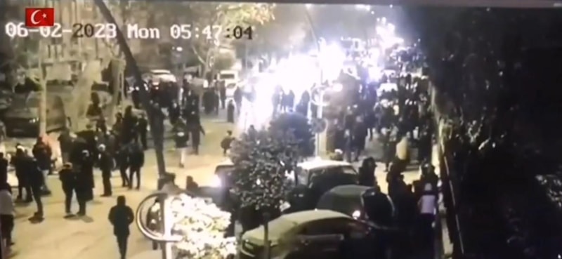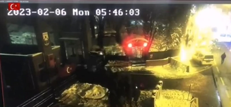 Kahramanmaraş merkezli ilk depremin ardından saat 05.46'da kaydedilen görüntülerde, asker depremden 89 dakika sonra kışladan çıkış yaparak ihtiyaç gereken yerlere doğru hareket ediyor.