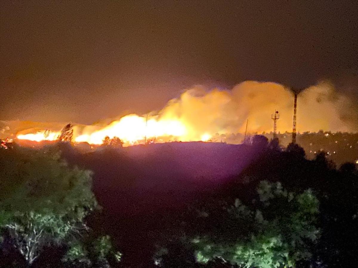 Rüzgarın da etkisiyle büyüyen yangın, itfaiye ekiplerince kontrol altına alınmaya çalışılıyor.