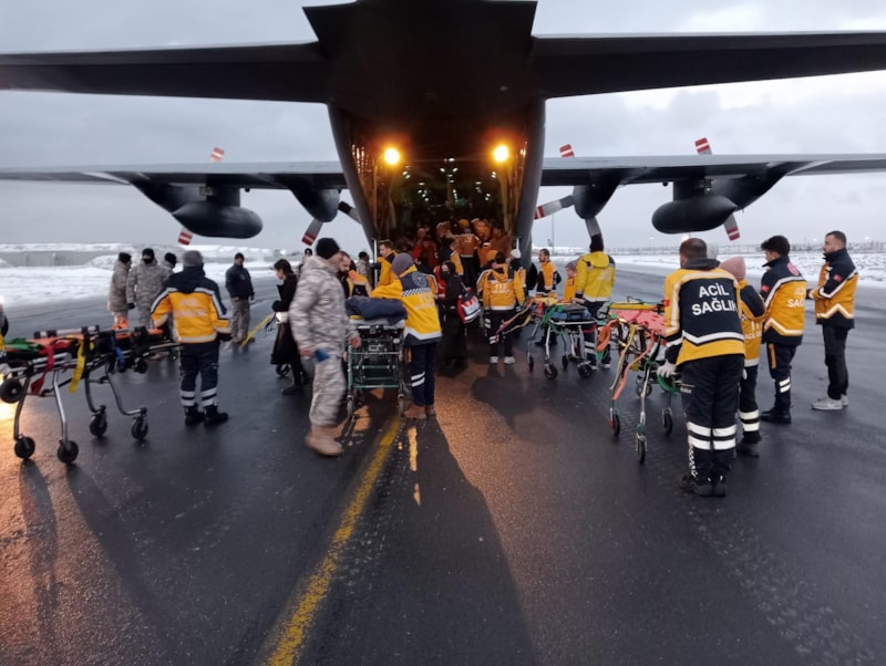 Enkaz altından kurtarılan 44 yaralı daha Türk Silahlı Kuvvetleri'ne ait askeri nakliye uçağı ile İstanbul’a getirildi.