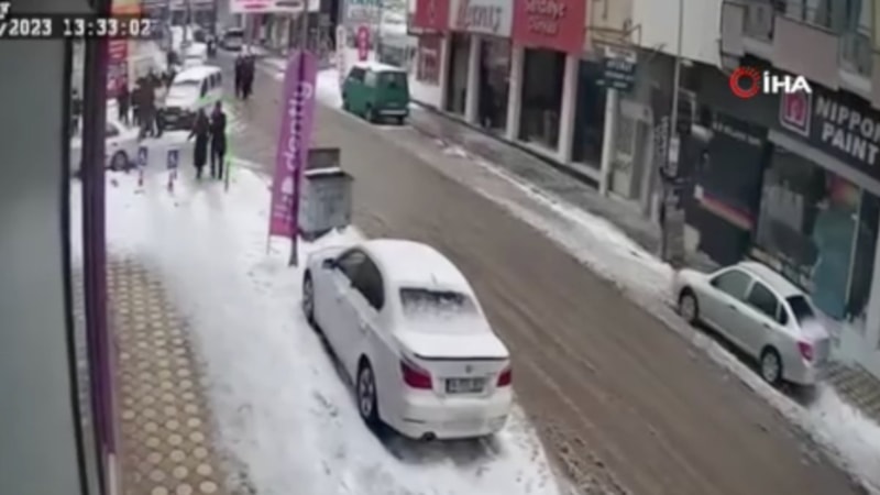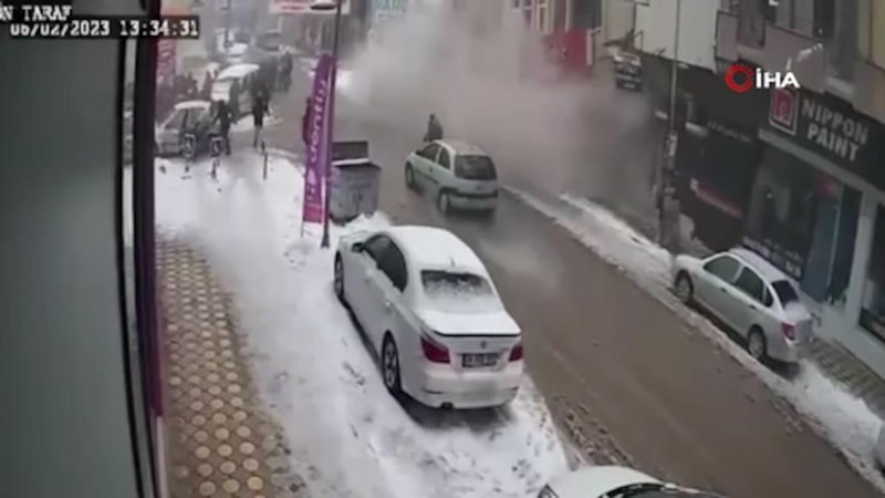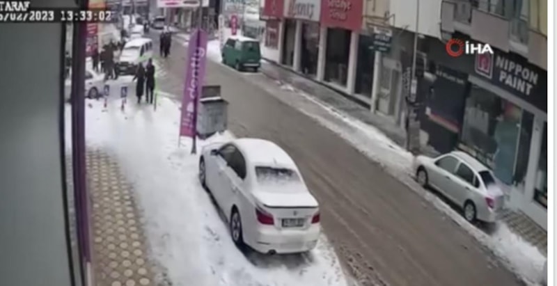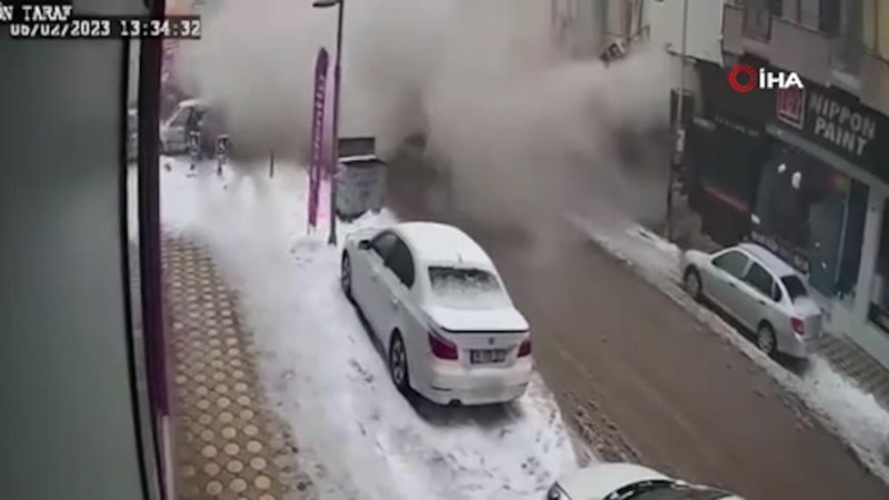 Görüntülerde cadde üzerinde depreme yakalananların büyük korku ve panikle sağa sola kaçıştıkları görülürken, trafikte seyir halinde olan bir aracın ise çöken binanın oluşturduğu toz bulutu arasında gözden kaybolduğu görülüyor.