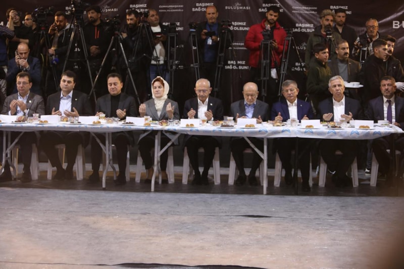 Cumhurbaşkanı Adayı Kılıçdaroğlu ve beraberindeki siyasi parti genel başkanları daha sonra iftar programına katıldı. İftar öncesi depremde hayatlarını kaybedenler için mevlit okutulurken, Millet İttifakı’nın üyeleri İyi Parti Genel Başkanı Meral Akşener ve Deva Partisi Genel Başkanı Ali Babacan ezana kısa bir süre kalan salona geldi.