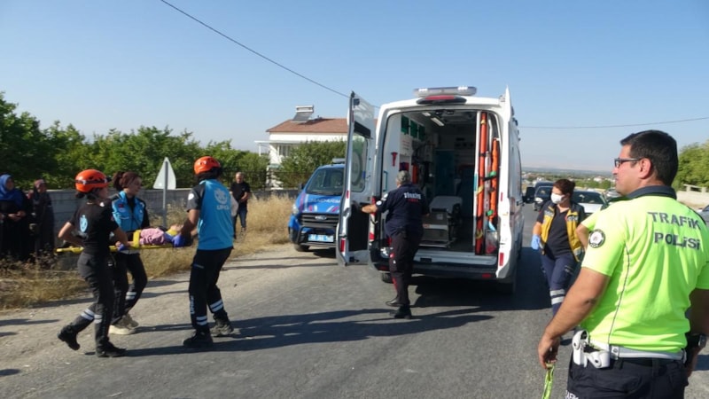 Çarpmanın etkisiyle araç sürücüsü anne ile birlikte üç çocuğu yaralandı.