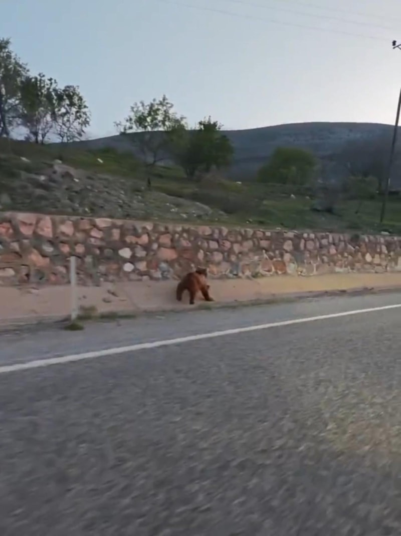 Arapgir ilçesinde köy yolunda ilerleyen bir aracın önüne aniden çıkan ayı, cep telefonuyla kaydedildi. Görüntüler kısa sürede sosyal medyada yayıldı.