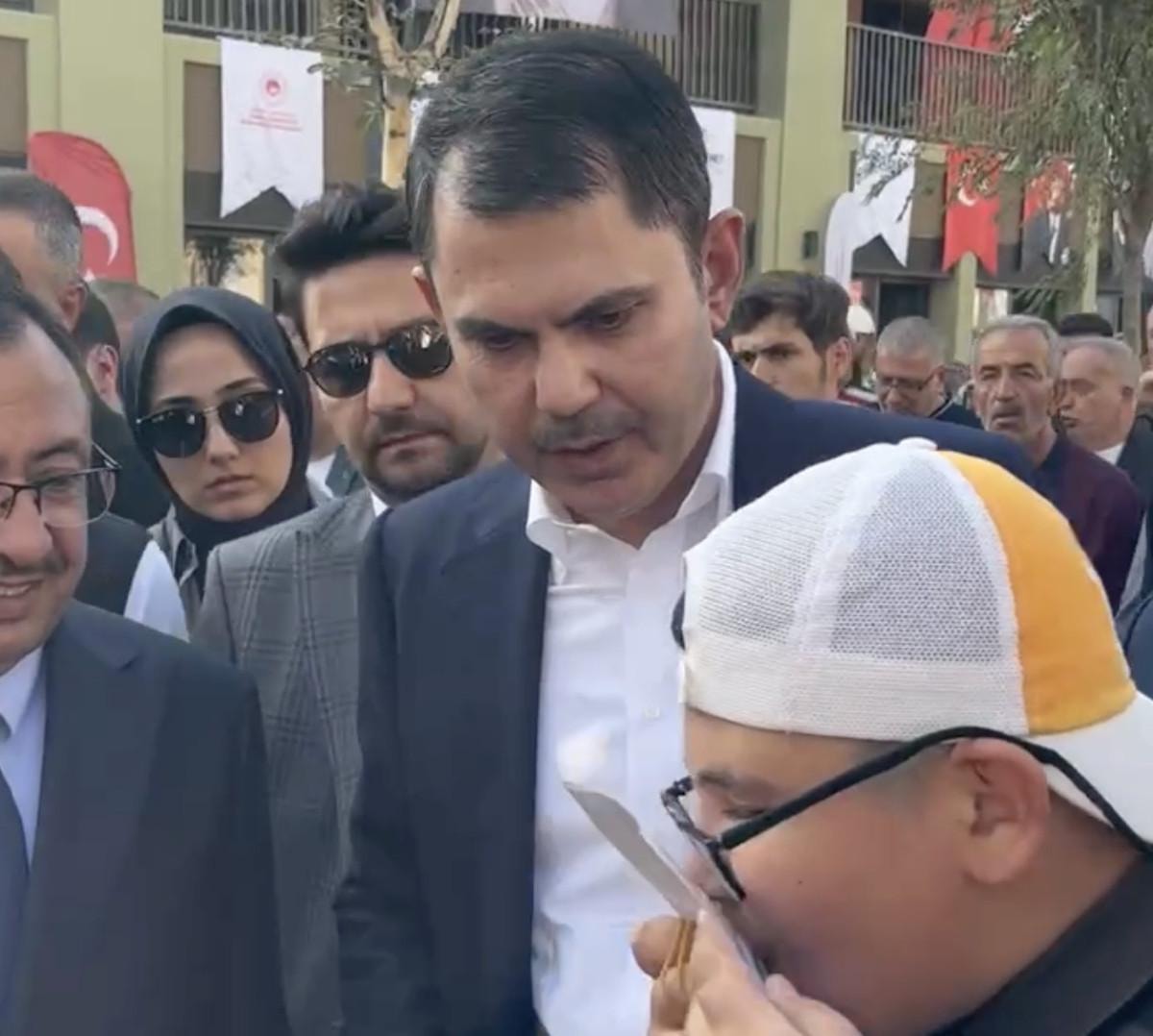 Çevre, Şehircilik ve İklim Değişikliği Bakanı Murat Kurum, anahtar teslim töreni öncesi Malatya'ya gelirken kaydedilen bir görüntü yürekleri ısıttı.