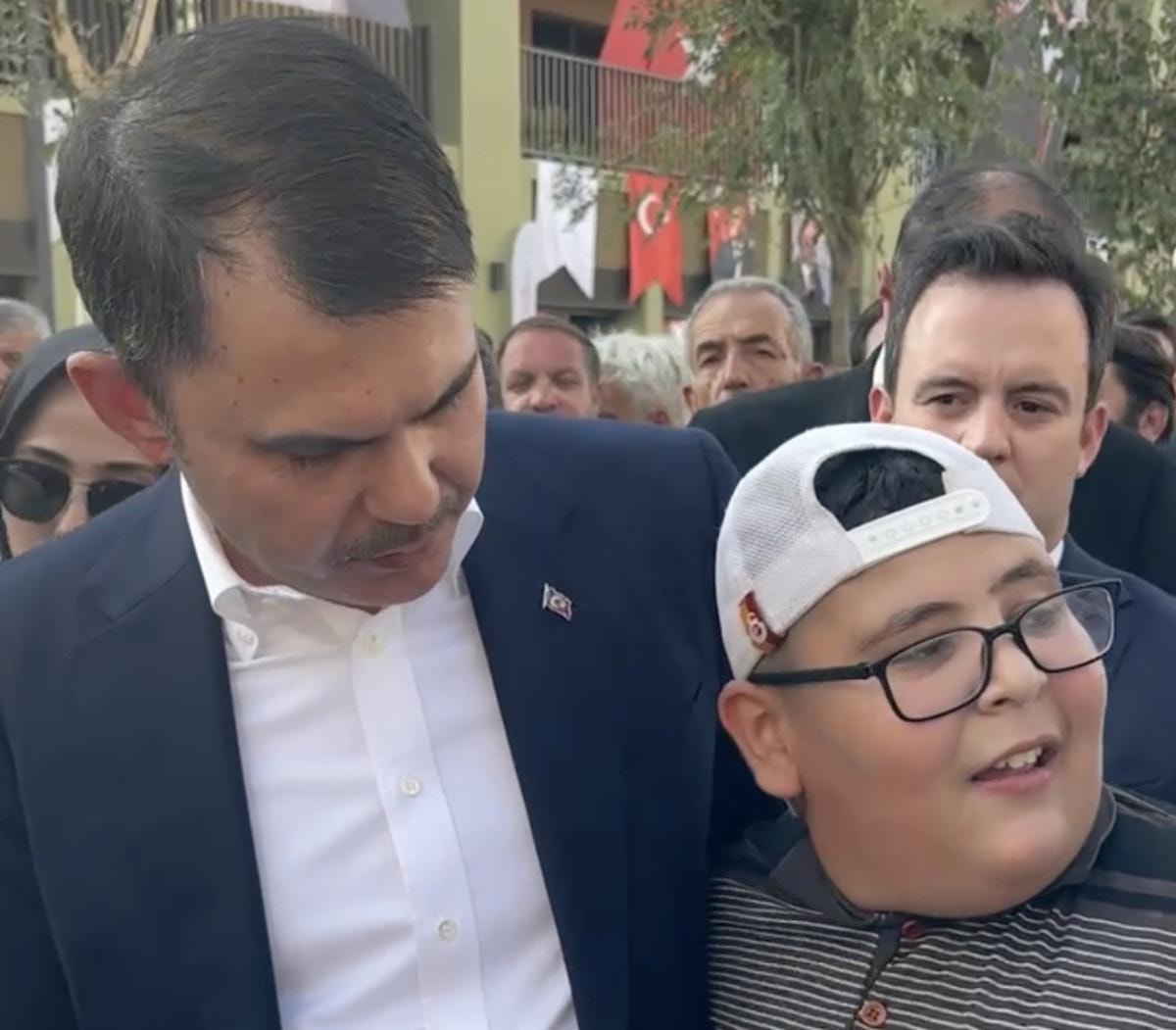 Cumhurbaşkanı Recep Tayyip Erdoğan'a sevgi besleyen bir çocuk, alanda bulunan yetkililerin yardımıyla Murat Kurum ile buluştu.