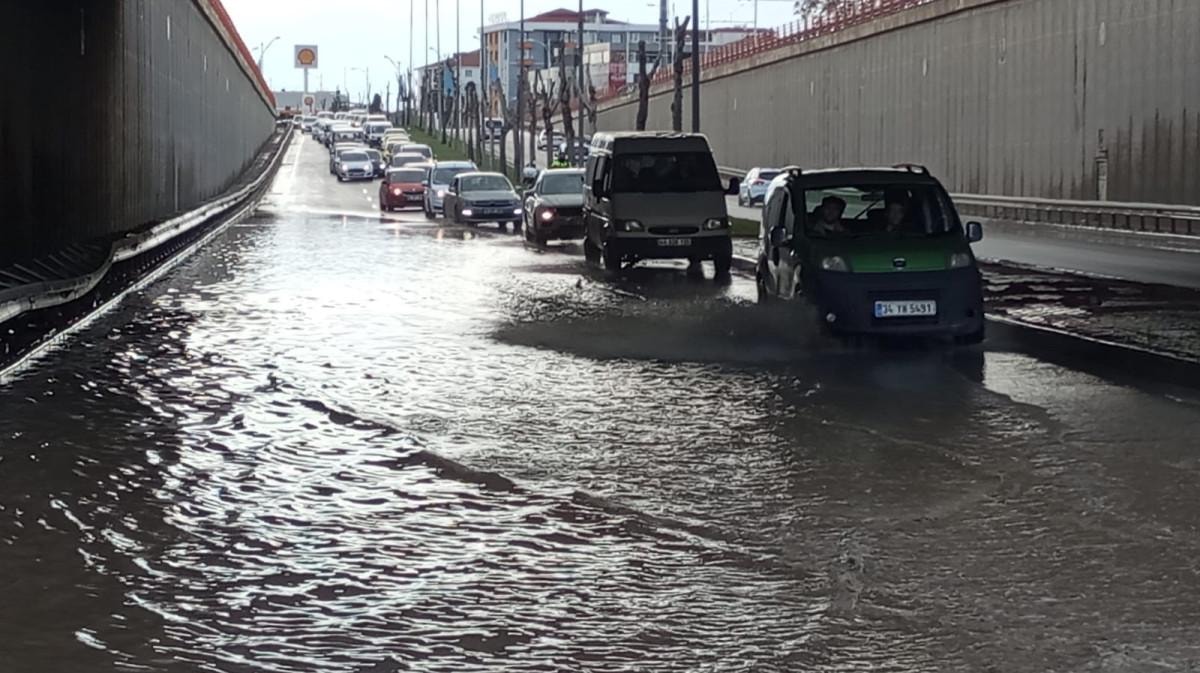 Yoğun su birikintileri nedeniyle bazı araçlar yolda kaldı.