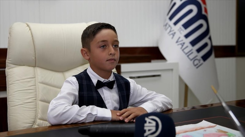 23 Nisan Ulusal Egemenlik ve Çocuk Bayramı'nda depremzede öğrenci Tarık Boztepe, Malatya Valisi Hulusi Şahin'in koltuğuna oturdu.