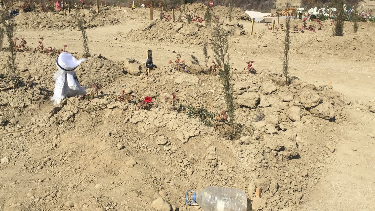 Teyze Nazlı Umaç, yeğeninin mezar tahtasına sünnetliğini astı.
