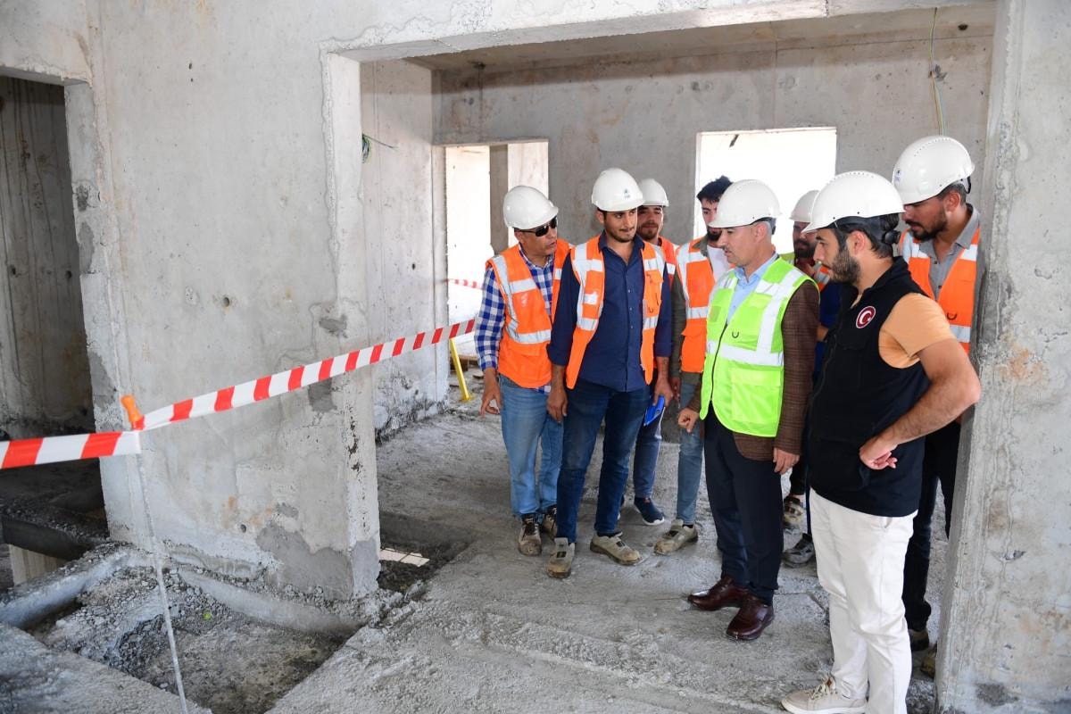 Yeşilyurt Belediye Başkanı Mehmet Çınar, depremzede vatandaşlara tahsis edilmek üzere inşaatına başlanan deprem konutlarının her aşamasını da yakından takip ediyor.