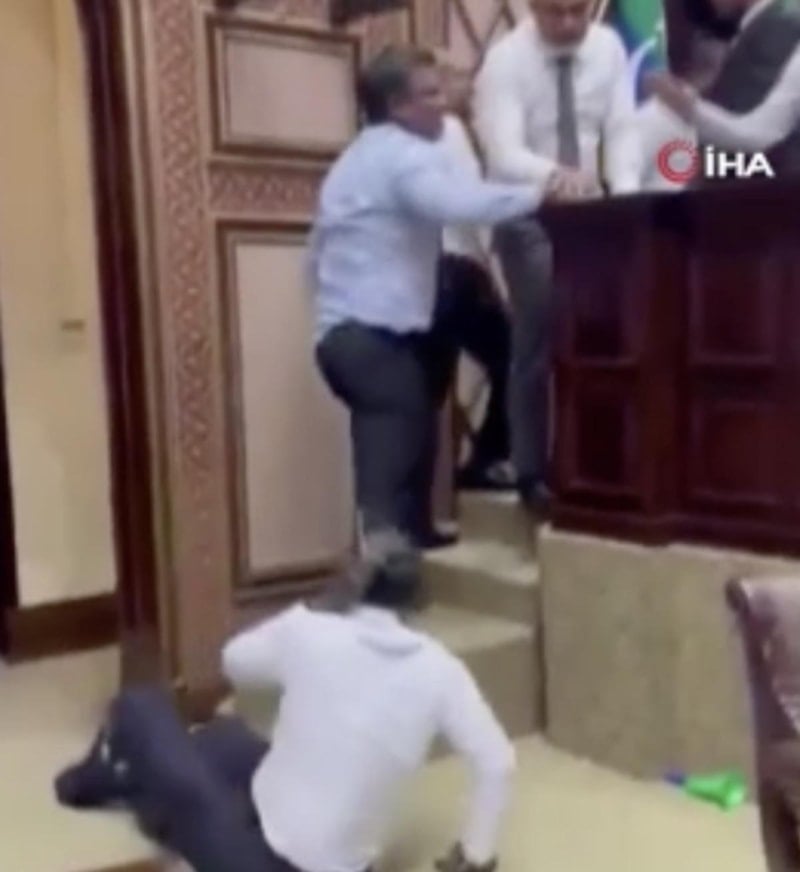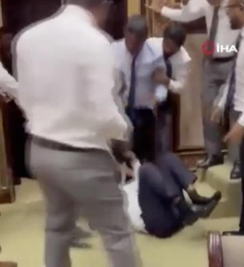 Sosyal medyada paylaşılan görüntülerde, milletvekillerinin kavga ettiği, birbirini tekmelediği ve yere düştüğü anlar kameralara yansıdı.