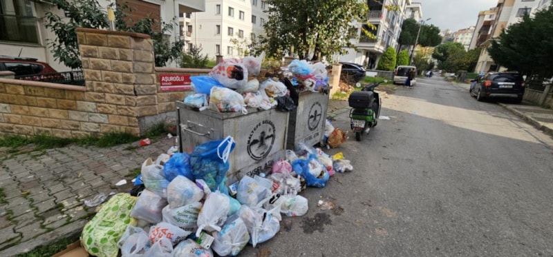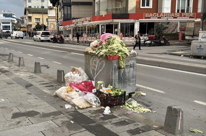 İlçedeki Kışlalı Caddesi'nde pazartesi günleri kurulan semt pazarının çöpleri, işçilerin çalışmaması nedeniyle yolda kaldı. Konteynerlerin çöple dolup taştığı görüldü.