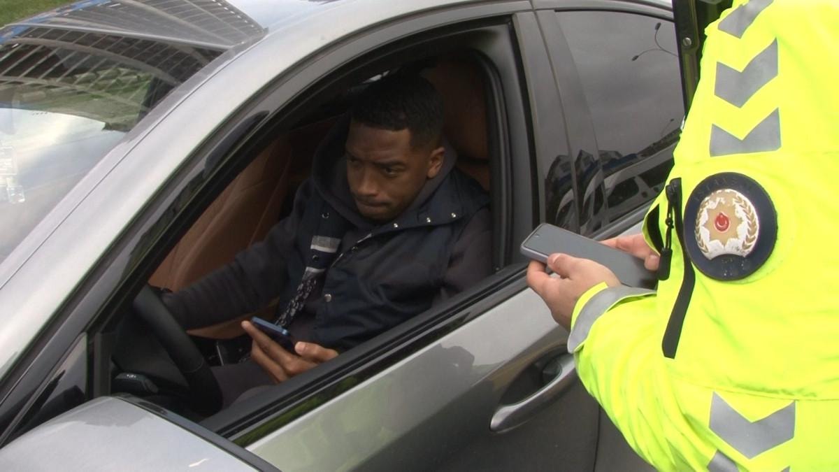 Otomobiliyle emniyet şeridine girerek trafik kurallarına uymayan Süper Lig oyuncusu polis ekipleri tarafından fark edilerek durduruldu.