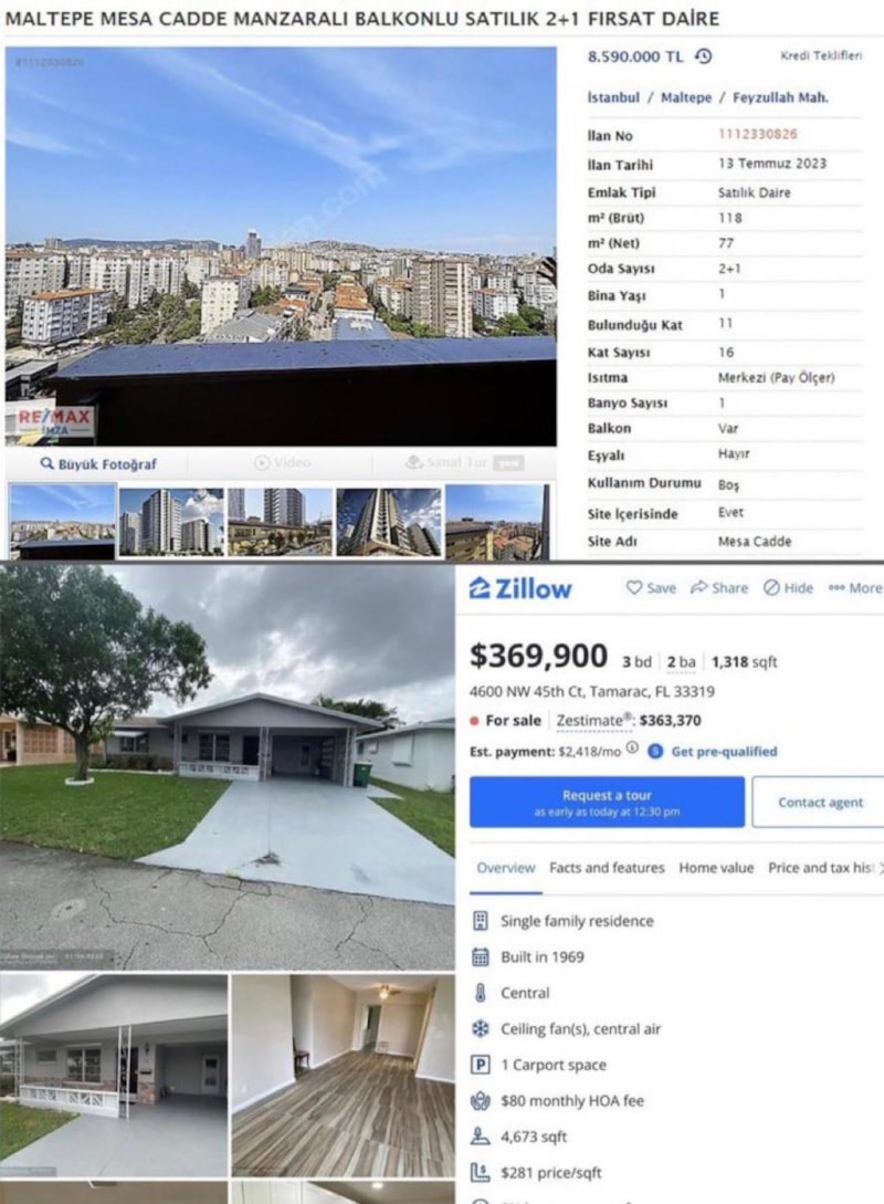 Maltepe’de satışa koyulan ev, ABD’nin Florida eyaletinin en büyük şehri olan Miami’deki müstakil bir evle yarışır hale geldi.