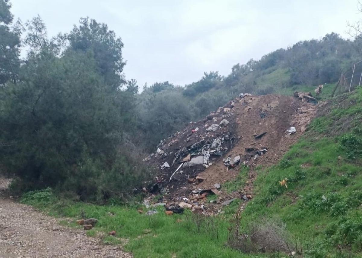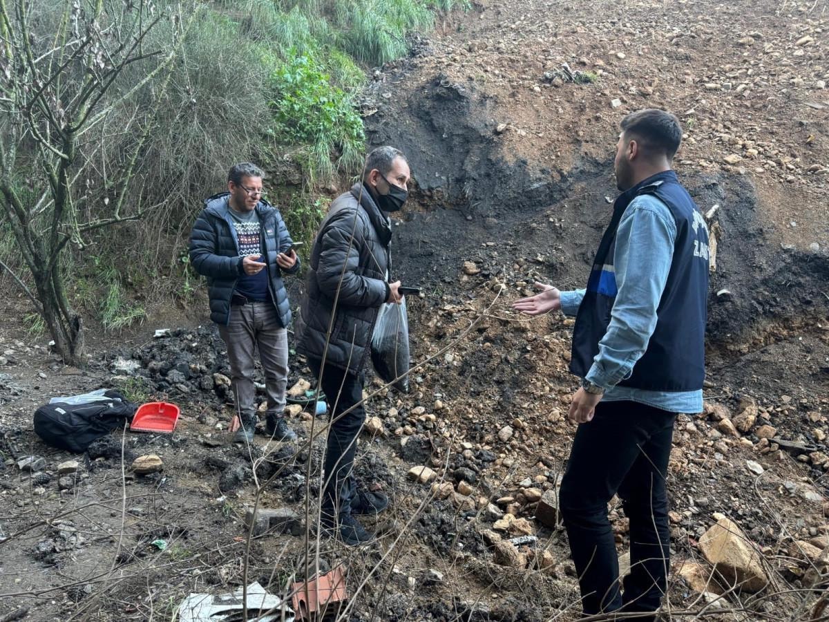 Atığın üzerinin hafriyat toprağıyla kapatılmaya çalışıldığı belirlendi.