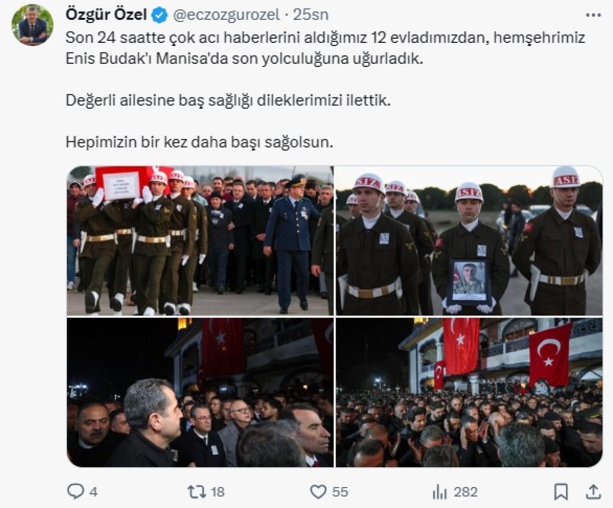 Şehidin ailesine başsağlığı dileyen Özel, paylaşımında şu ifadeleri kullandı: